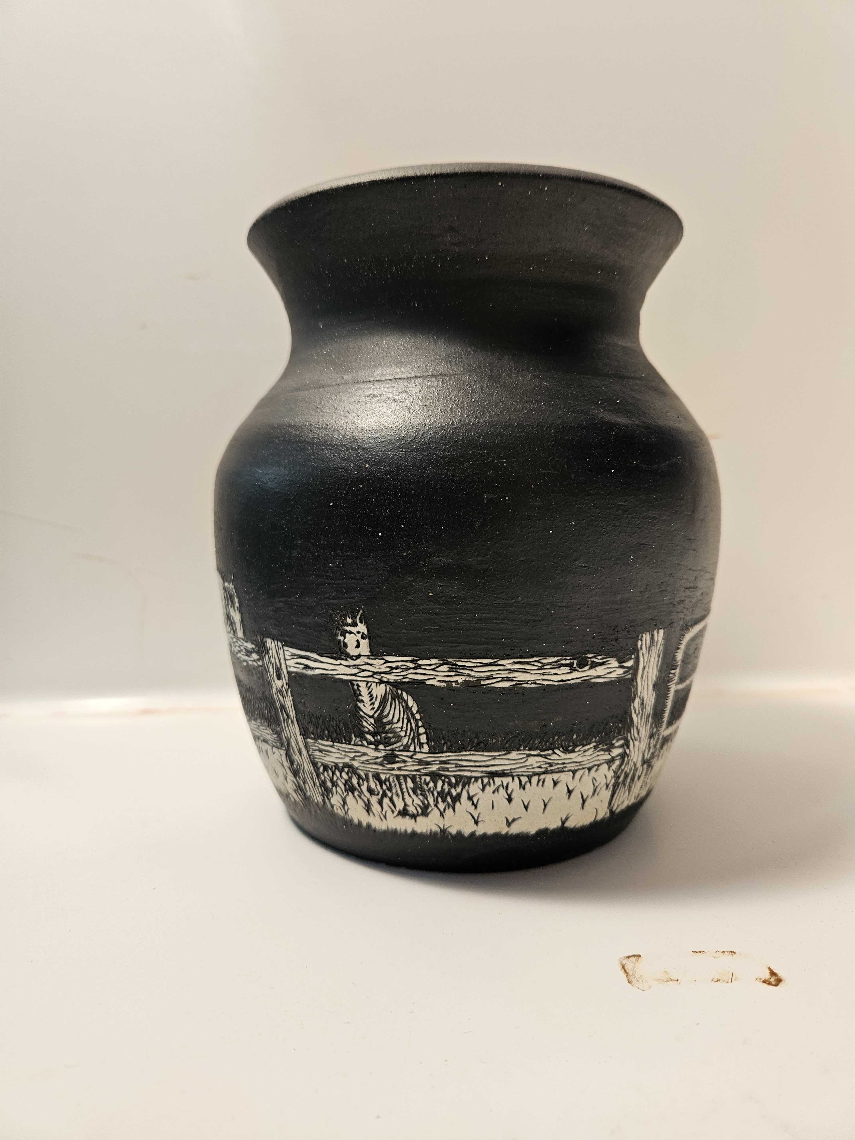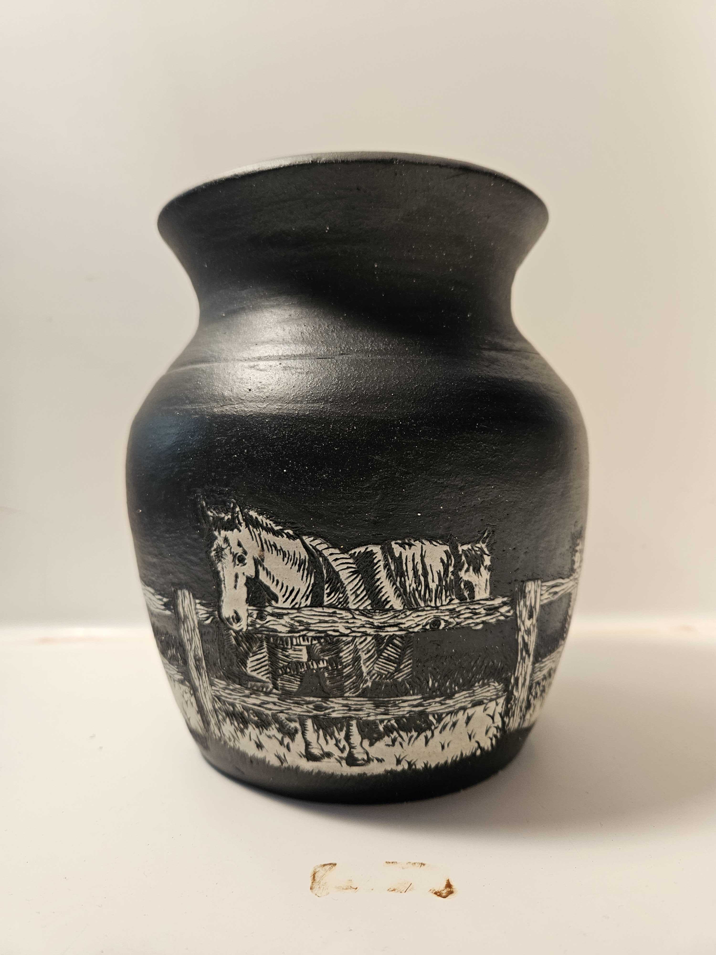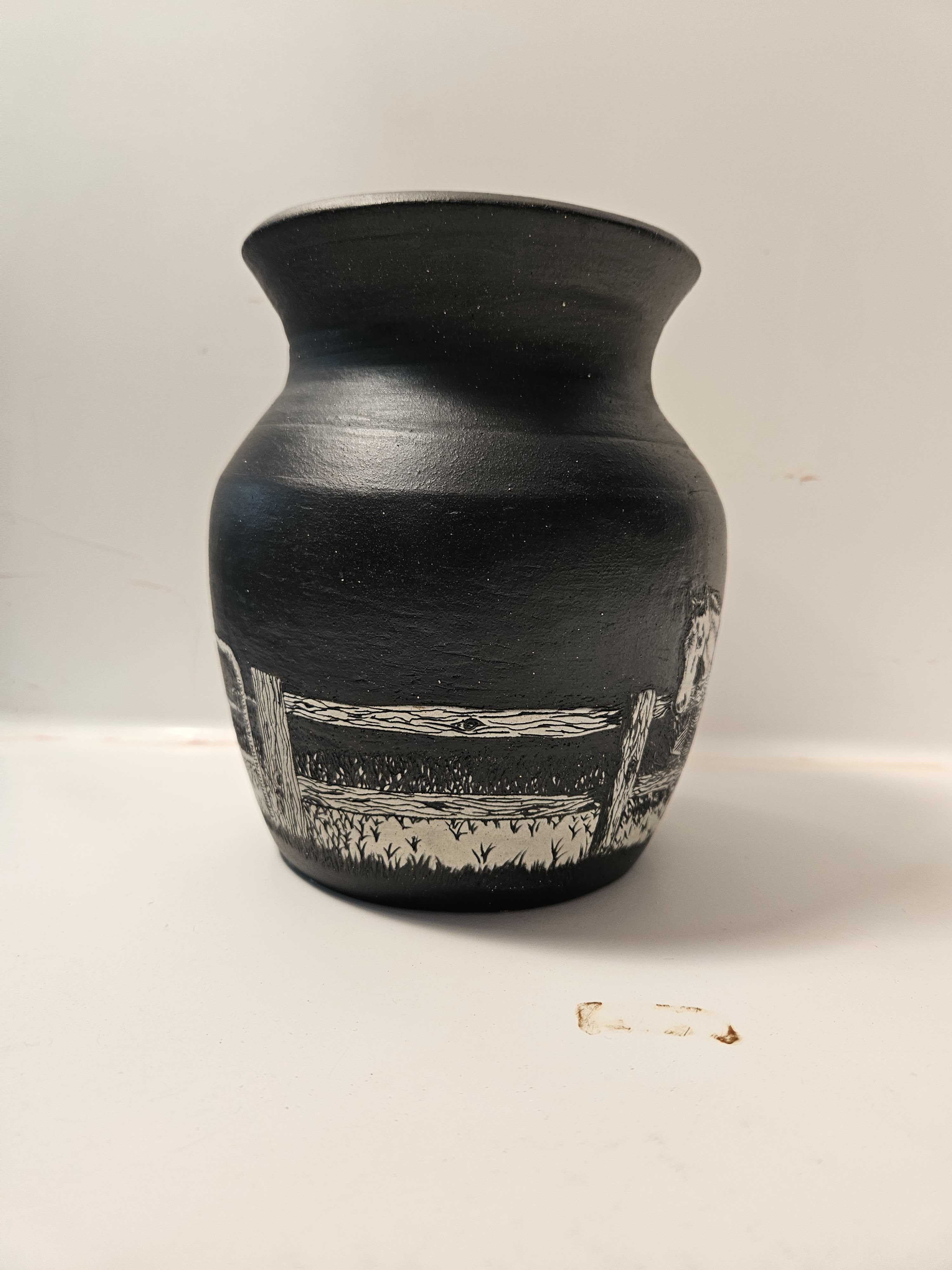 Sgraffito technique, stoneware, cone 6. 2025. Personal collection.